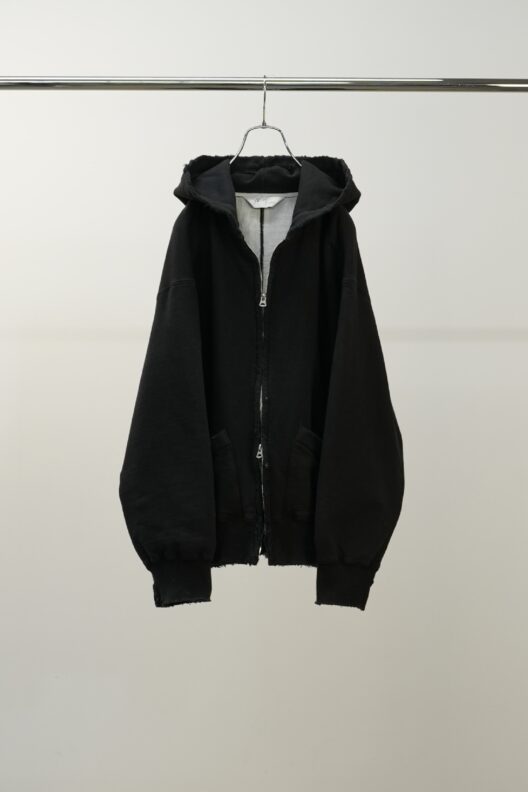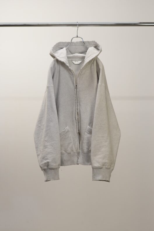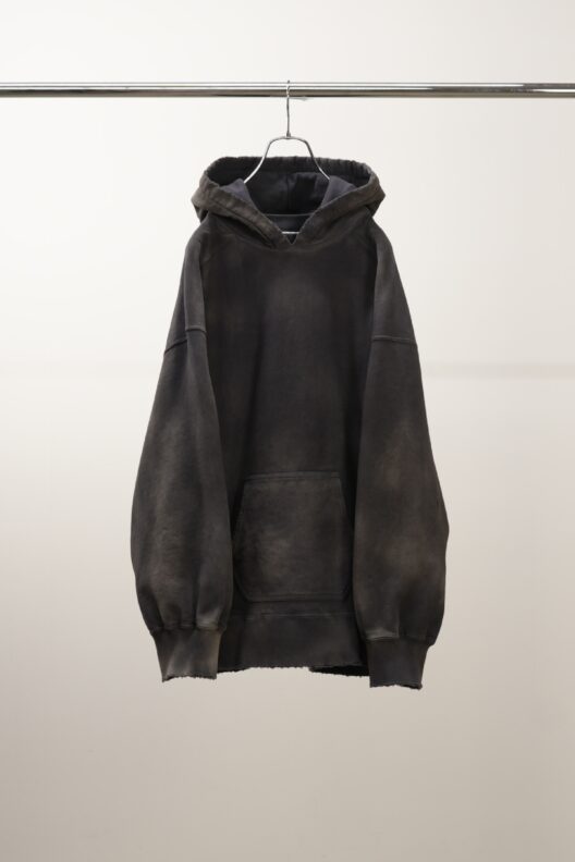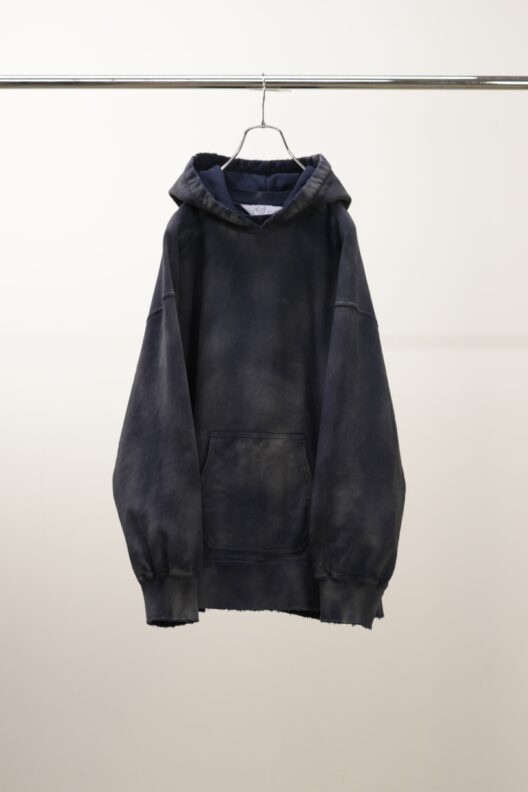不均一に施された染めの表情が美しいスウェットフーディ、