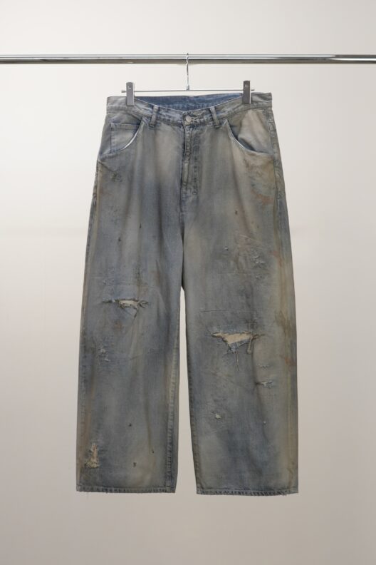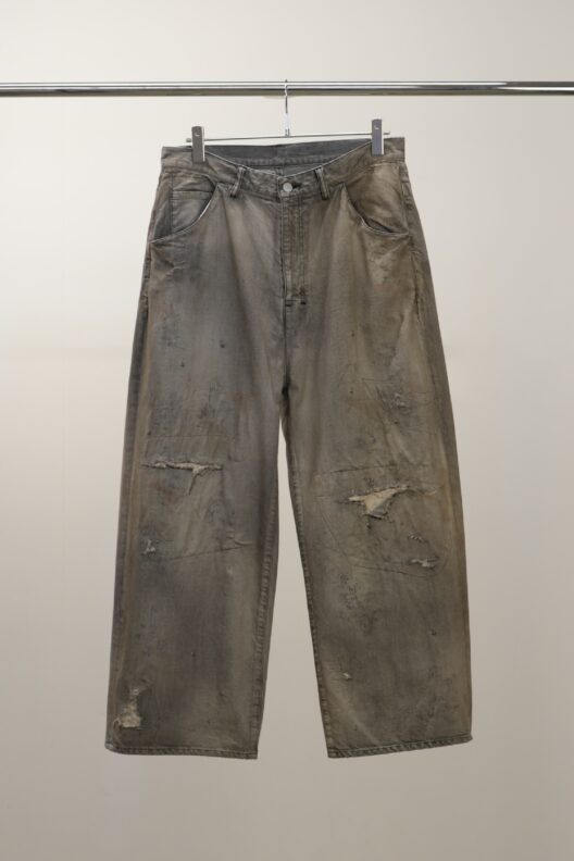 デザイン性も感じられるダメージとリペアが秀逸なデニムパンツが到着。