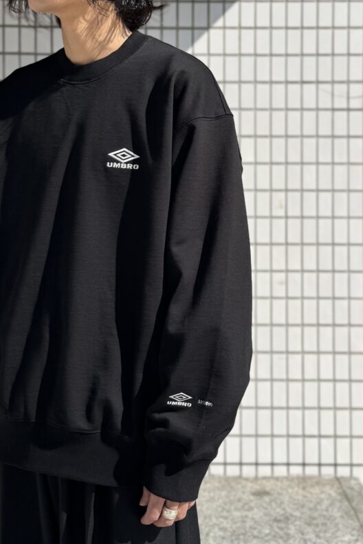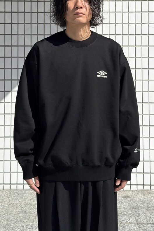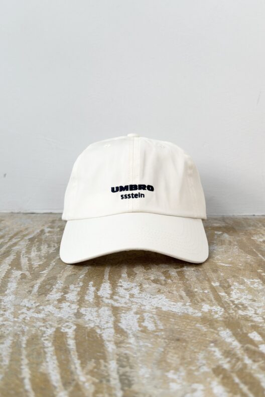 弊店にはsssteinとUMBRO、両者のロゴをあしらったスウェットとキャップが入荷。