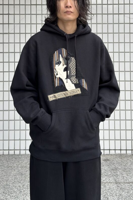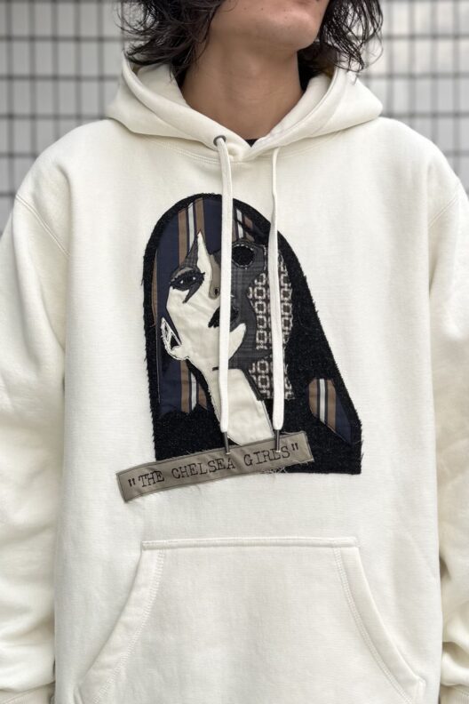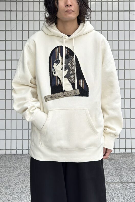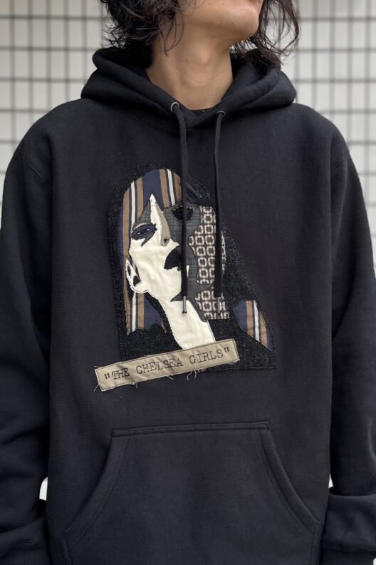 手作業によるパッチワークが魅力のスウェットパーカと、