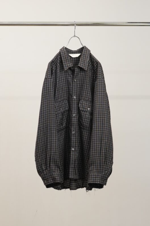 深みあるチェック柄や要所のダメージが目を惹く長袖シャツ。