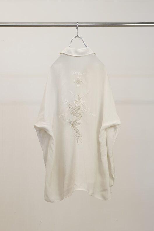 繊細なキュプラのボディへ敢えて粗めの刺繍を配すことで、