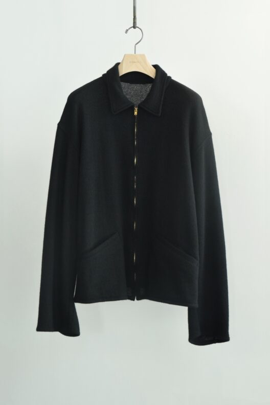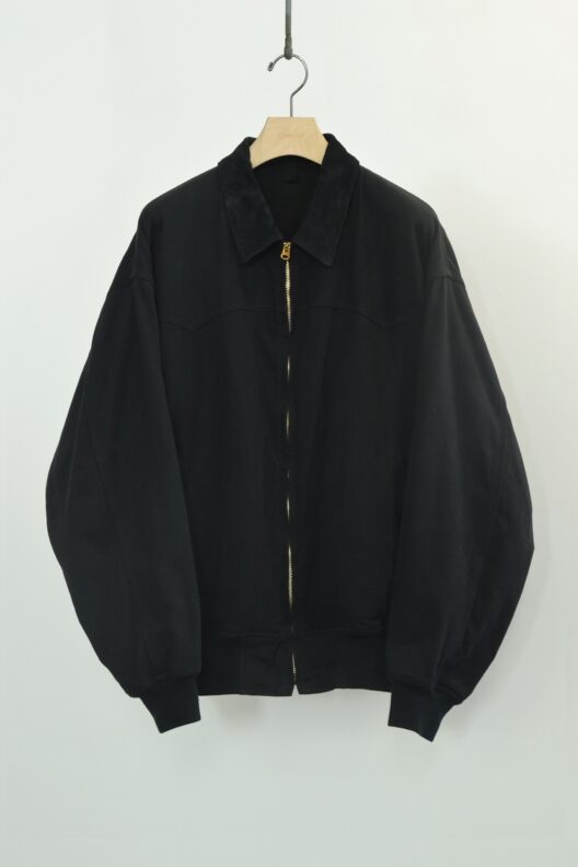 柔らかく微起毛したような質感が特徴のブラックドリルジップジャケットは、