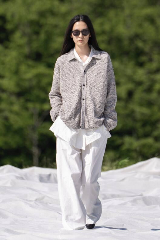 ドライタッチなギマ糸を用いたメッシュニット等、